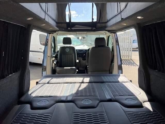 Great value VW Transporter Shuttle which has been transformned into a Spacious camper Day Van with A brand new Skyline Poptop Roof, The van sleeps 4 and the rear comes with a genuine crash tested 3 Seater Rusty Lee Rock n Roll bed (with isofix), Professionaly unpholstered seats with VW Logo, New 18" Black gloss Alloys, brand new flooring, Roof bars, Awning Rail, Side Bars, Fully insulated rear with curtains, Passenger swivel seat base, Low mileage No VAT, with Air Con, Bluetooth, Tinted rear windows, Rear parking sensors, Tailgate model, Twin side sliding doors, Only £190 per year road tax, Please call or email to arrange an appointment on our vehicles. We are a family run company offering you the best personal service when selecting a car, we fully check that all of our cars are HPI clear and carefully select the vehicles which we retail. 12 Months Free AA Breakdown Cover supplied with our vehicles. We also offer Flexible finance packages to suit your budget, HP and PCP deals available with no hidden documentation fees. We can also arrange delivery anywhere in the UK, please get in touch with us to discuss options. Was £34995...