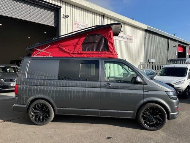 Great Highline Van with the 6 speed gearbox and 204ps engine, New pop top fitted by Skyline North roofs and fully capeted rear with spot lights, so ready to use as it is or be fully converted to a camper van, 3 front seats, double passenger has a swivel base fitted, 20" Leighton van alloys, excellent styling with rear spolier, roof bars and black gloss grill. Air Con, Bluetooth, Rear parking sensors and Cruise control, Contact us for more details and arrange and viewing. WAS £32500