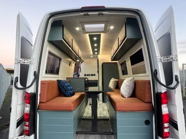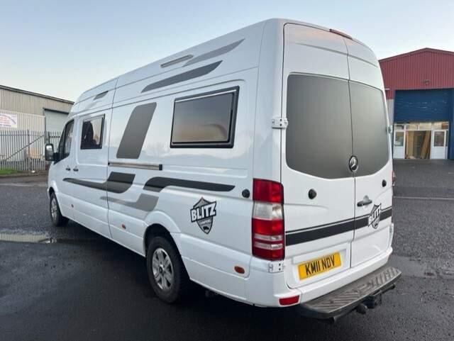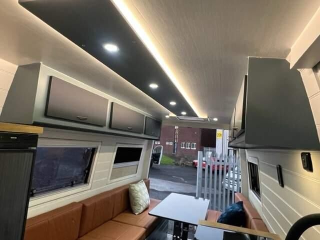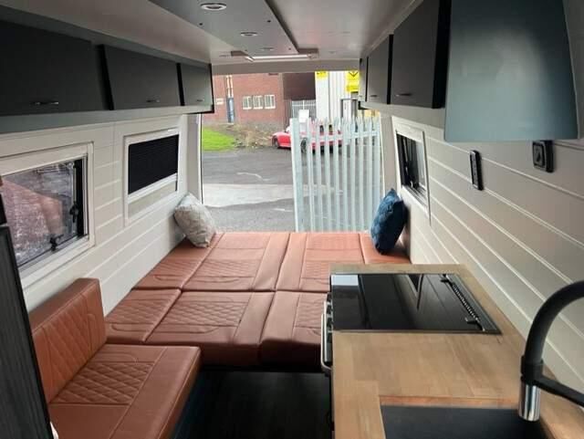 Reduced from £29995 ... Excellent conversion carried out by Blitz Campers. Fully upholstered throughout with 3 front seats a rear dining area which makes a comfortable double bed and also has extra seating allowing an extra small sleeping area, this conversion also has a shower room and brand new Porta potty removable toilet. Spec includes *Truma Combi Heating/Water System *Onboard LPG Gas Tank *110w Solar Panel system *110ah Leisure battery *Exterior LED lighting 12v, USB & 230v Outlets *70L Onboard water tank *Load rated Alloy wheels *Skylight *4 Double glazed windows with flynets & blinds *Large 12v Compressor Fridge *3 Burner Hob, Oven, Grill, Sink, Full Size mixer shower with extractor fan/light * LED lighing *Digital TV ariel *Victron intellugent DC Charger *Bespoke interior.